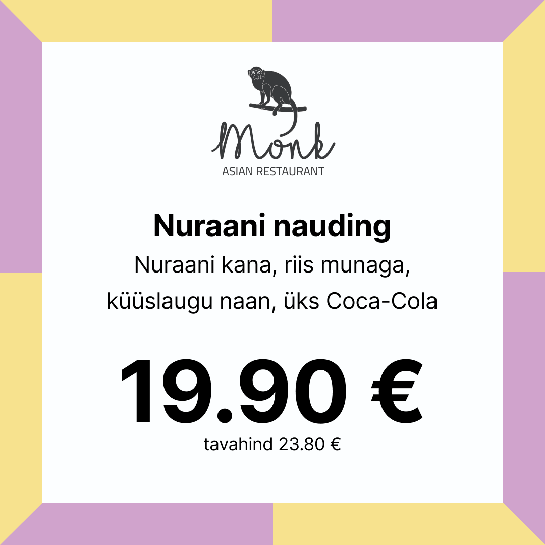 Monkis õhtusöök kahele vaid 14.90 €! Monki õhtupakkumised E-R alates kella 15st.