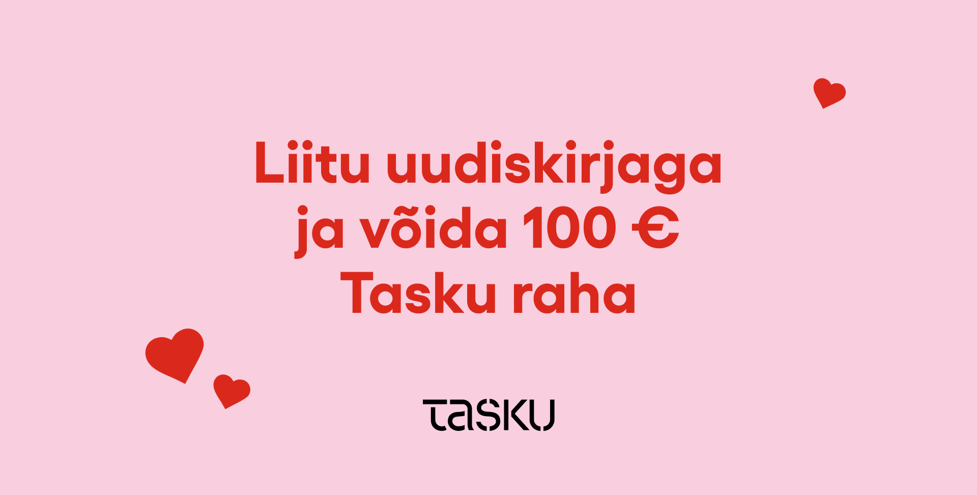 Kõigi uute Tasku uudiskirjaga liitujate vahel loosime välja 3 x 100 € väärtuses Tasku kinkekaarte. Lisaks läheb loosi ka 10 Tasku sümboolikaga riidest kotti ja viis Tasku vihmavarju. Kampaanias osalemiseks tuleb uudiskirjaga liituda perioodil 29.01.2026 – 1.03.2026.