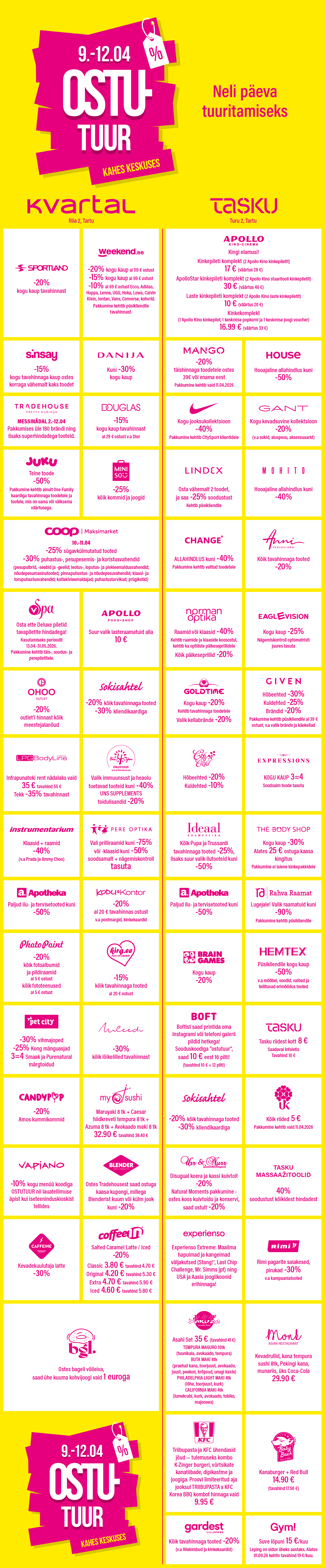OSTUTUUR TASKUS JA KVARTALIS neljapäevast pühapäevani!