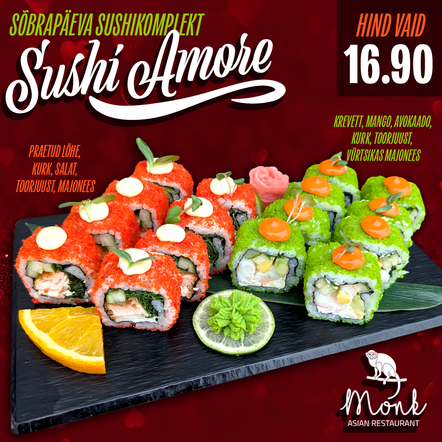 Sõbrapäeva sushikomplekt: Sushi Amore hinnaga 16.90 €.